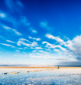 早餐后车赴茶卡盐湖,游览天空之境-【茶卡盐湖】(游览时间约2小时)进入盐湖景区,边看盐雕、边拍照,天地合一的景色很美。在退去水的湖床上我们将脚印排列整齐的印在上面。疯狂的拍照,摆各种POSE,记得带上墨镜,天气好的话,镜子般的盐湖和触手可及的蓝天白云会格外耀眼。后翻越橡皮山、经黑马河抵达青海湖,入住酒店。